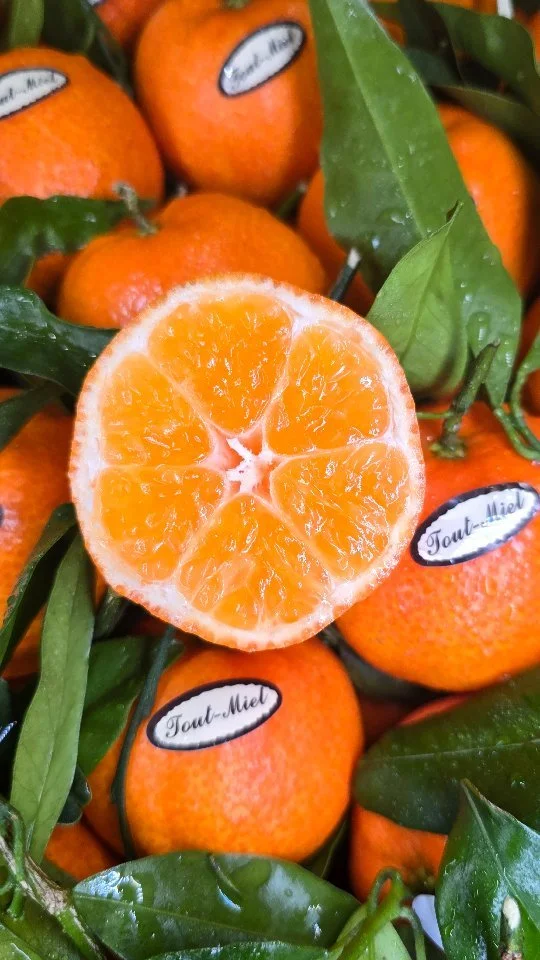 Citrus such as Miyagawa and the first Tout Miel clementines. Speciality lines include Bergamot, Finger Limes, Green Yuzu, Combava etc.